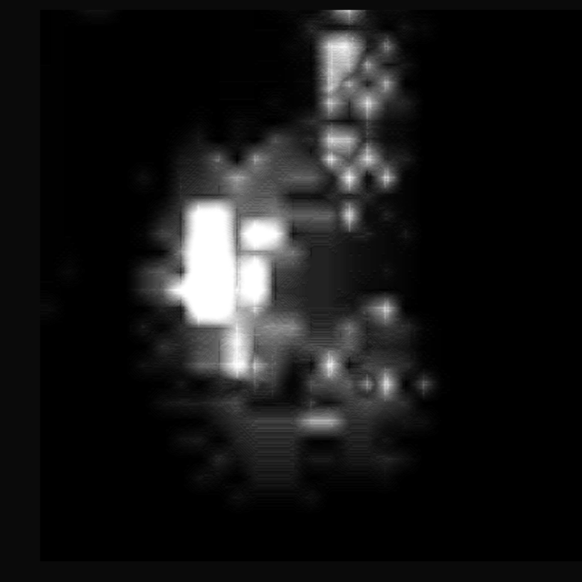 Rechtes Bild: Der erweiterte Ausschnitt thematisiert ein separates Detail, das als schwach ausgeprägtes Artefakt links des Tanks sichtbar ist. Ob es sich um ein dazugehöriges Element des Tanks (beispielsweise eine Aufhängung oder ein Regel-/Ventilelement) oder um ein undifferenziertes Artefakt handelt, kann nicht näher bestimmt werden, da sich ähnliche Strukturen in der ROI befinden. Da diese allerdings weniger strukturiert erscheinen im Vergleich zu dem Detail, wurde diese Struktur hier hypothetisch hervorgehoben.