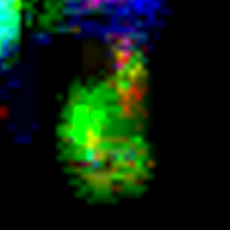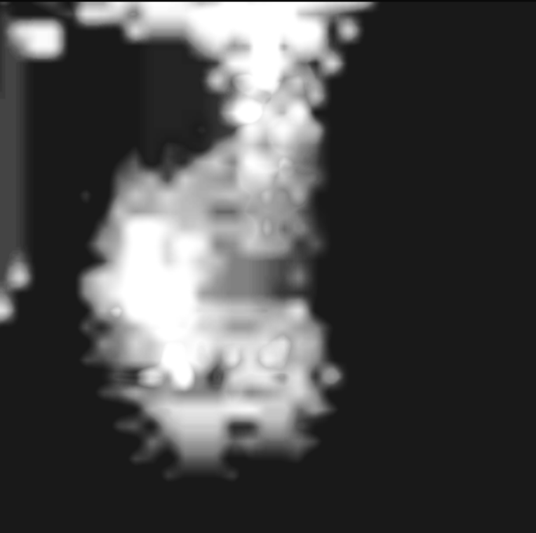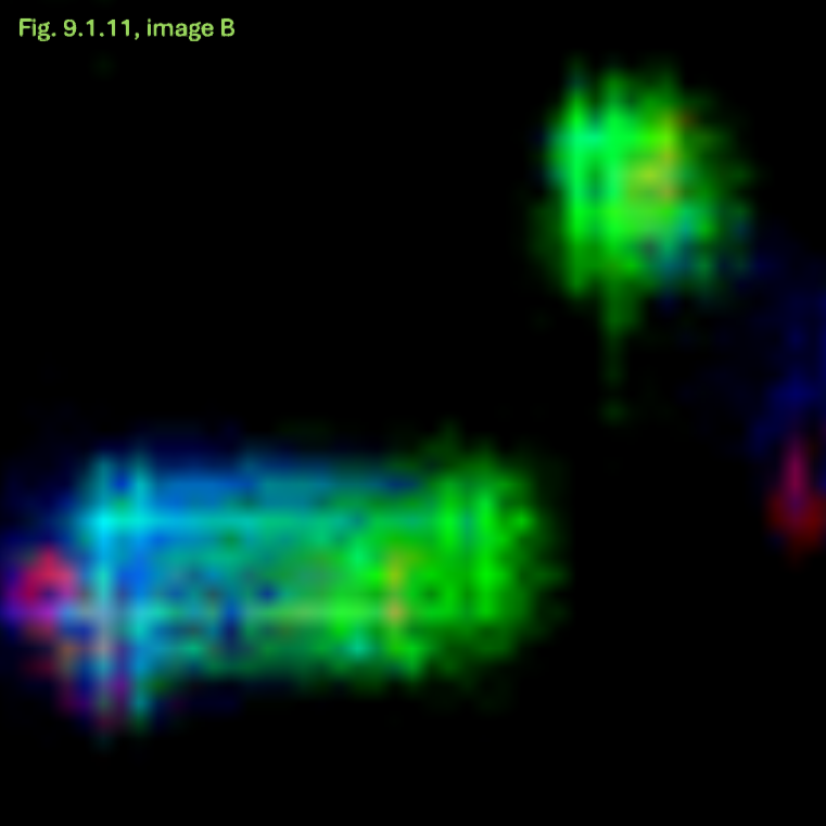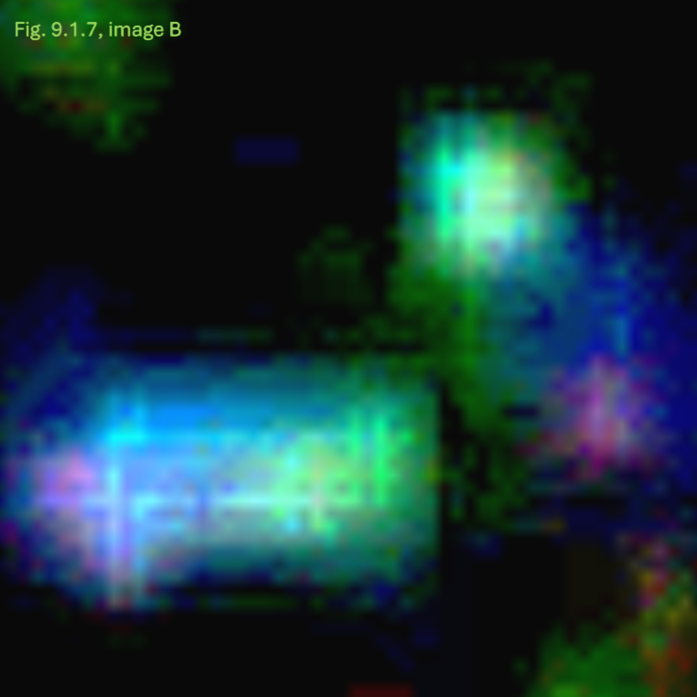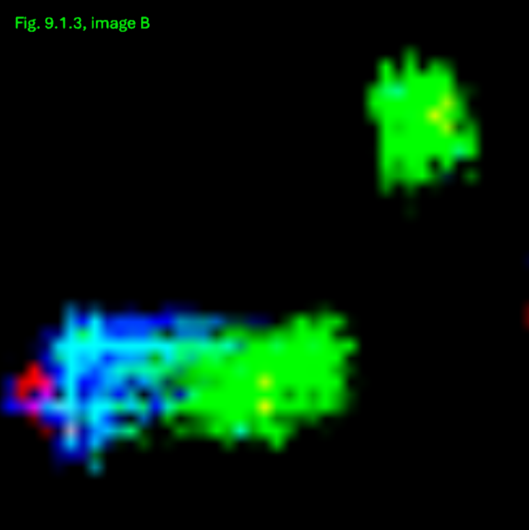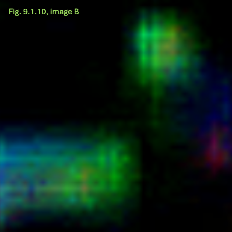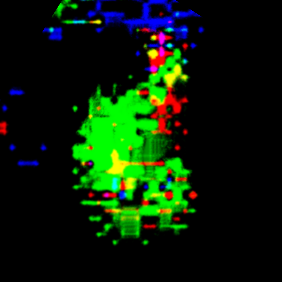 - Konsistenz: Die Annahme einer breiigen oder flüssigen Konsistenz wird dadurch gestützt, dass dieser Bereich sich in allen Anpassungskombinationen transparent und mit einer schwachen Farbintensität als homogene Fläche zeigt.