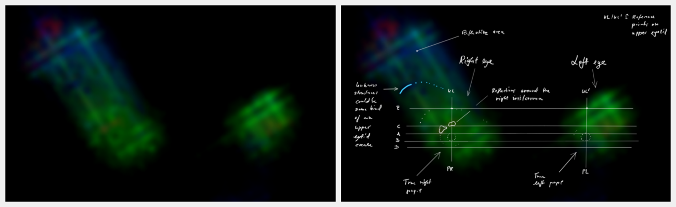 Die auf Zenodo verfügbare Studie basiert auf einer Voruntersuchung eines Standbilds, die hier präsentiert wird. Erklärende Hinweise zum Reproduktionsprotokoll der identifizierten Pupillenpositionen und weiteren morphologischen Analoga in der Studie finde Sie im nächsten Abschnitt.