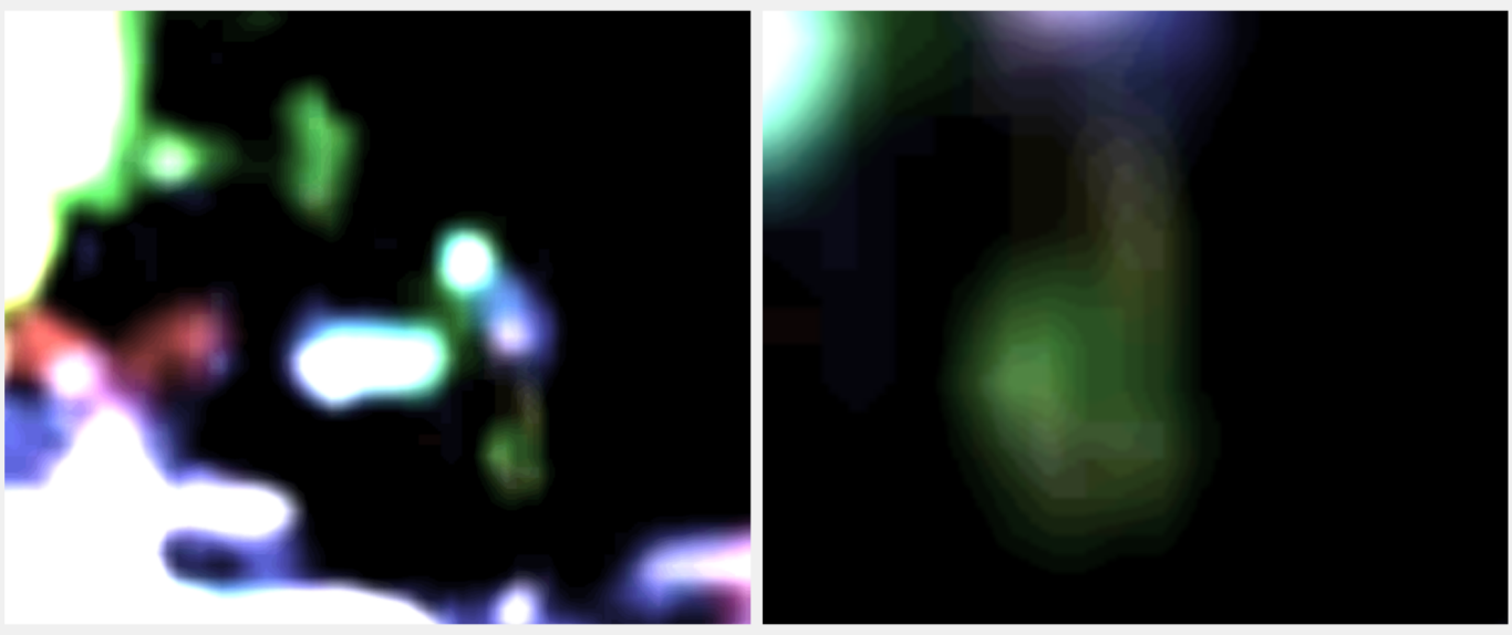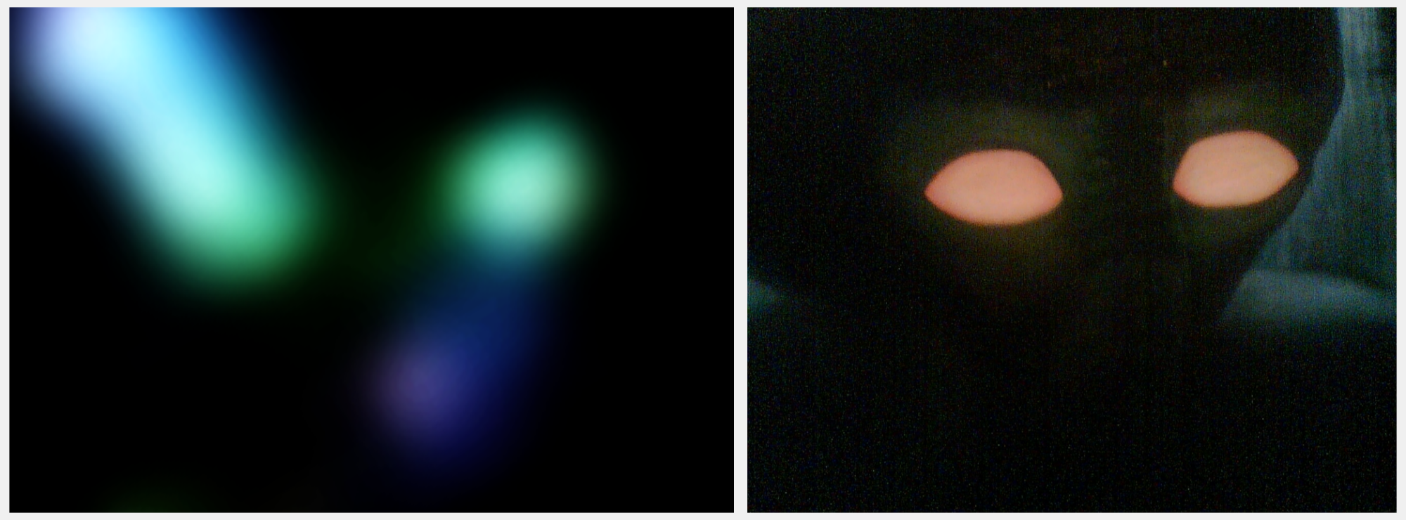 Abb. 3.3 & 3.4: Visueller Beleg der inhärenten Lumineszenz von Augenstrukturen.