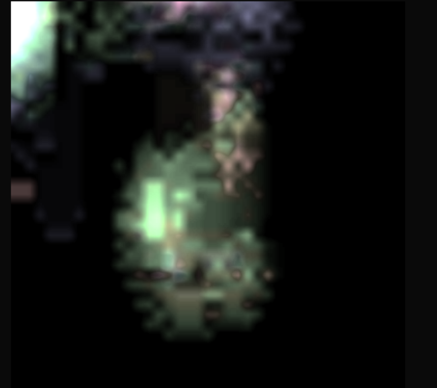 Die Szenerie zeigt die Entität in offenbar sitzender Position, korrespondierend mit den Größenverhältnissen im Inneren des UAPs. Der Kopf ist leicht angehoben und nach vorne (ventral) gerichtet, während ihr Blick gleichzeitig in Richtung des Ausblicks weist. Ein Versorgungselement (der Tank), das über den Tubus fest mit der oralen Schnittstelle verbunden ist, fungiert hierbei als Reservoir für das energetische Substrat.